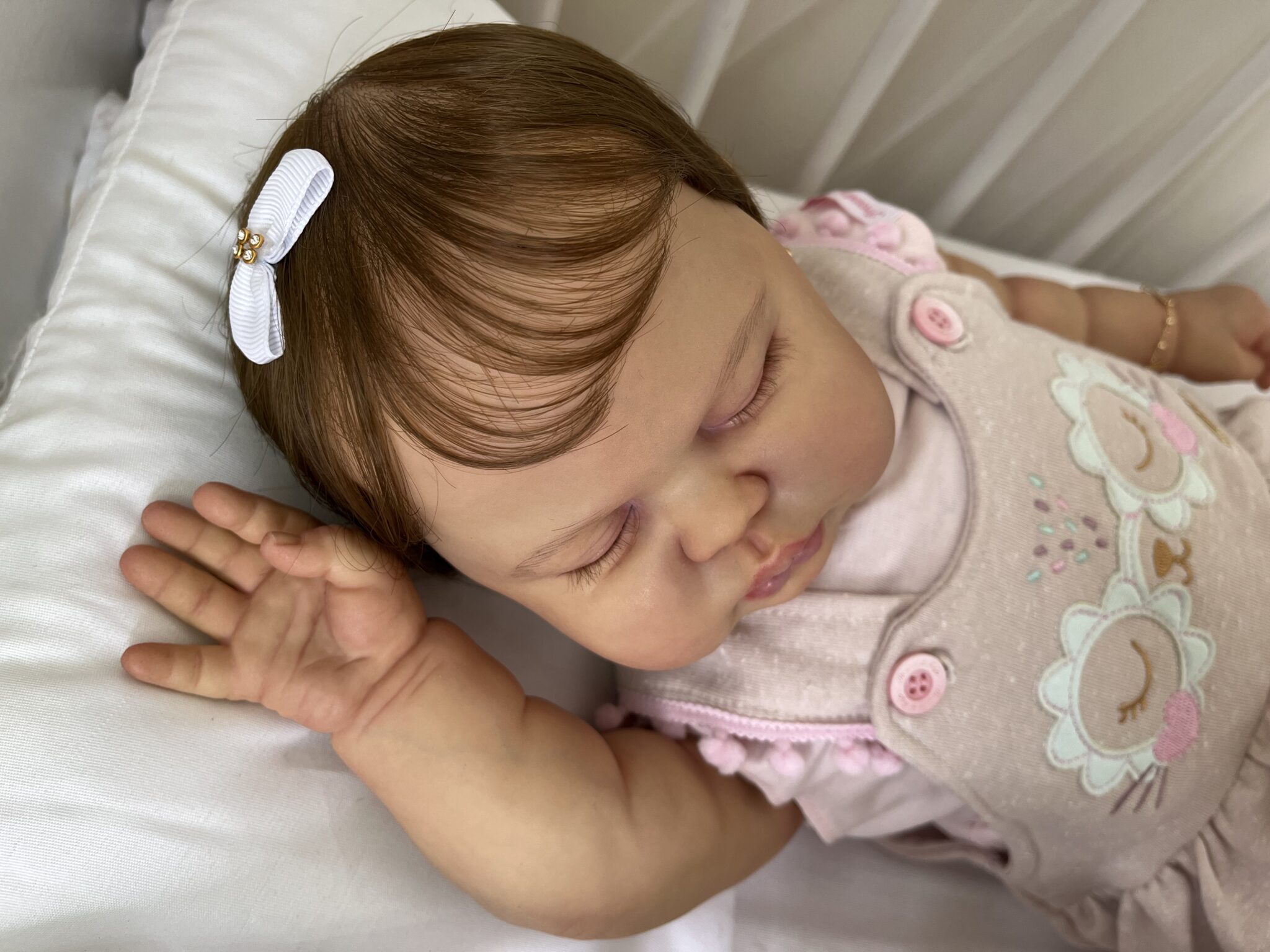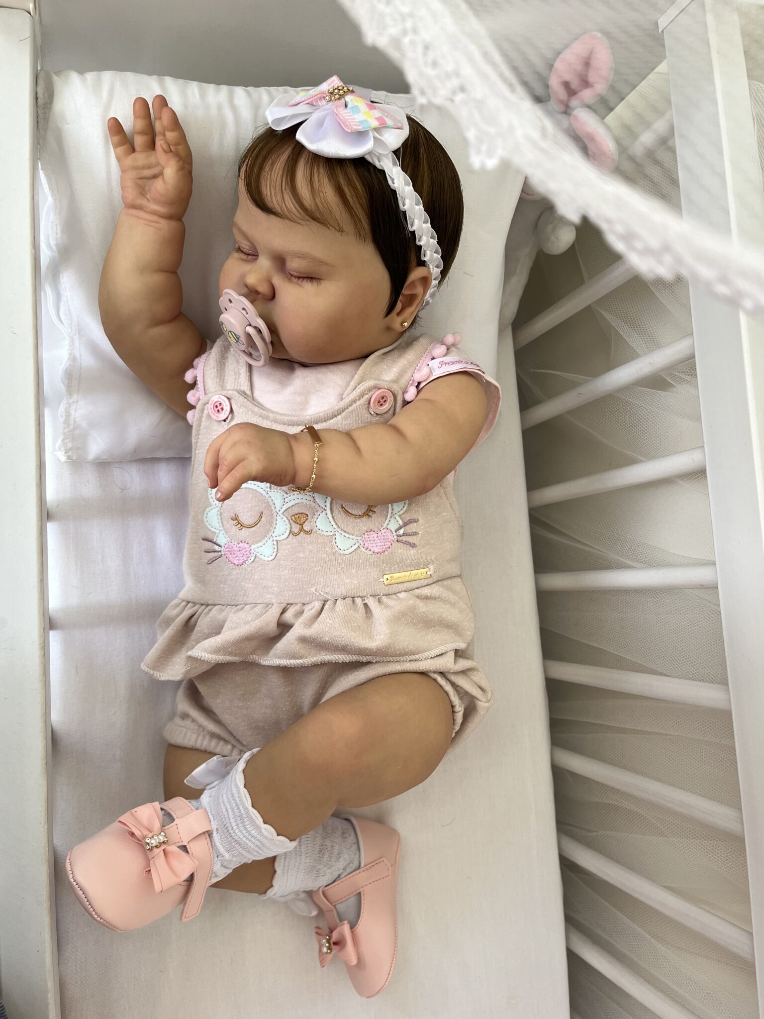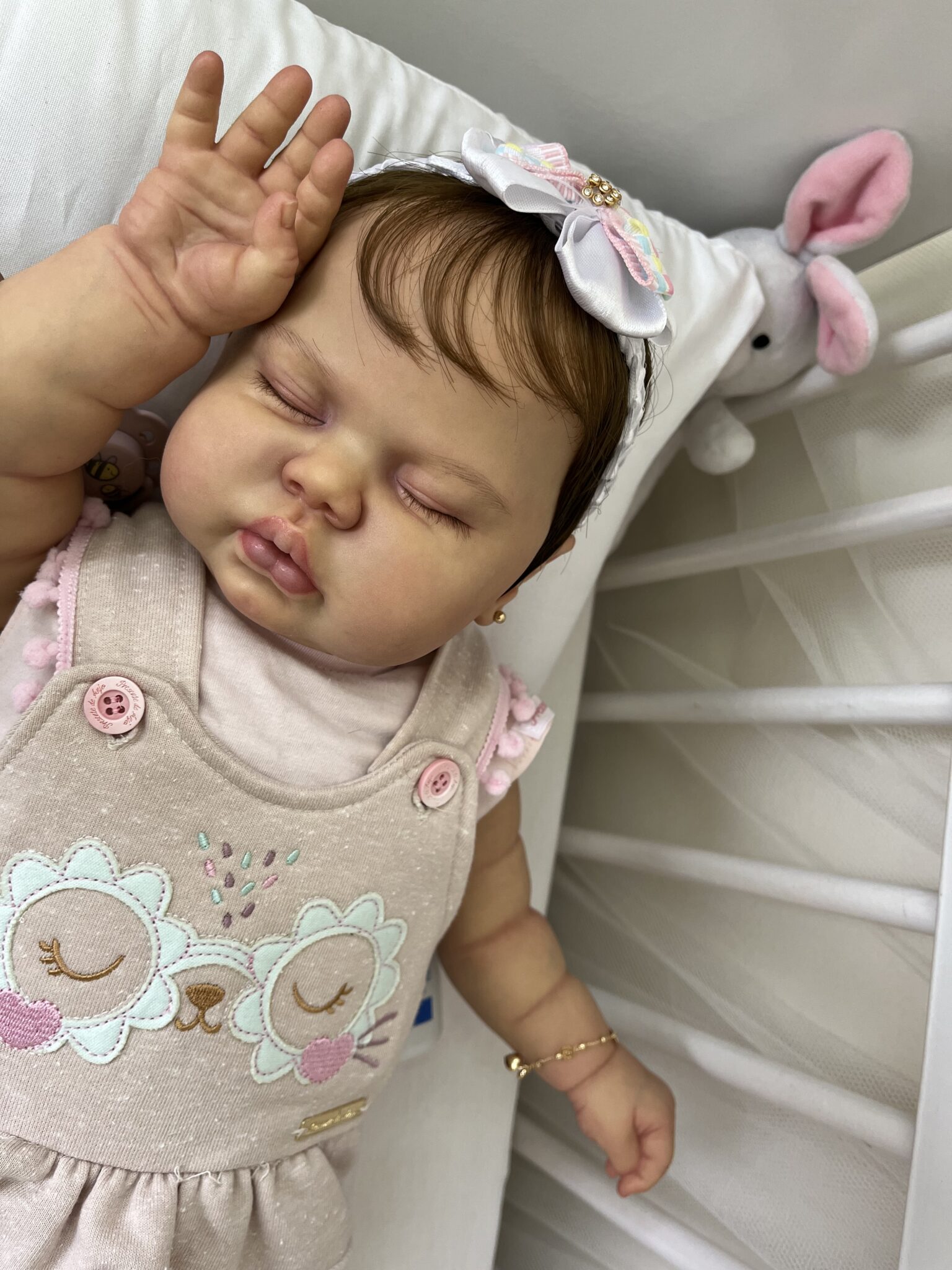 Membros em vinil lcd macio e corpinho de tecido em suede . Com técnica de pintura avançada ,cheio de detalhes . Como: marca de vacina , profundidade de pele , micro vasinhos , veias , cílios implantado fio por fio e etc ..